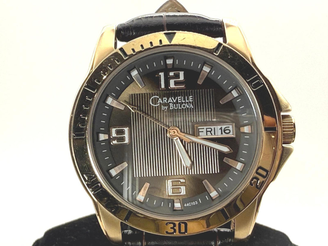 Caravelle by Bulova Quartz Watch 42mm Day Date Gold Tone New Battery