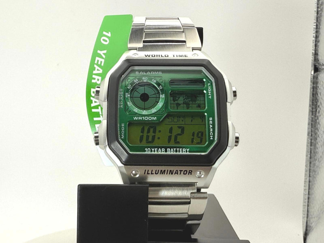 Casio AE-1200 World Time Mod Green Display | SS Bracelet | Box & Papers