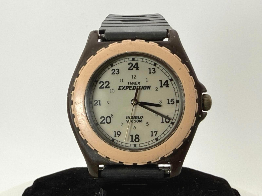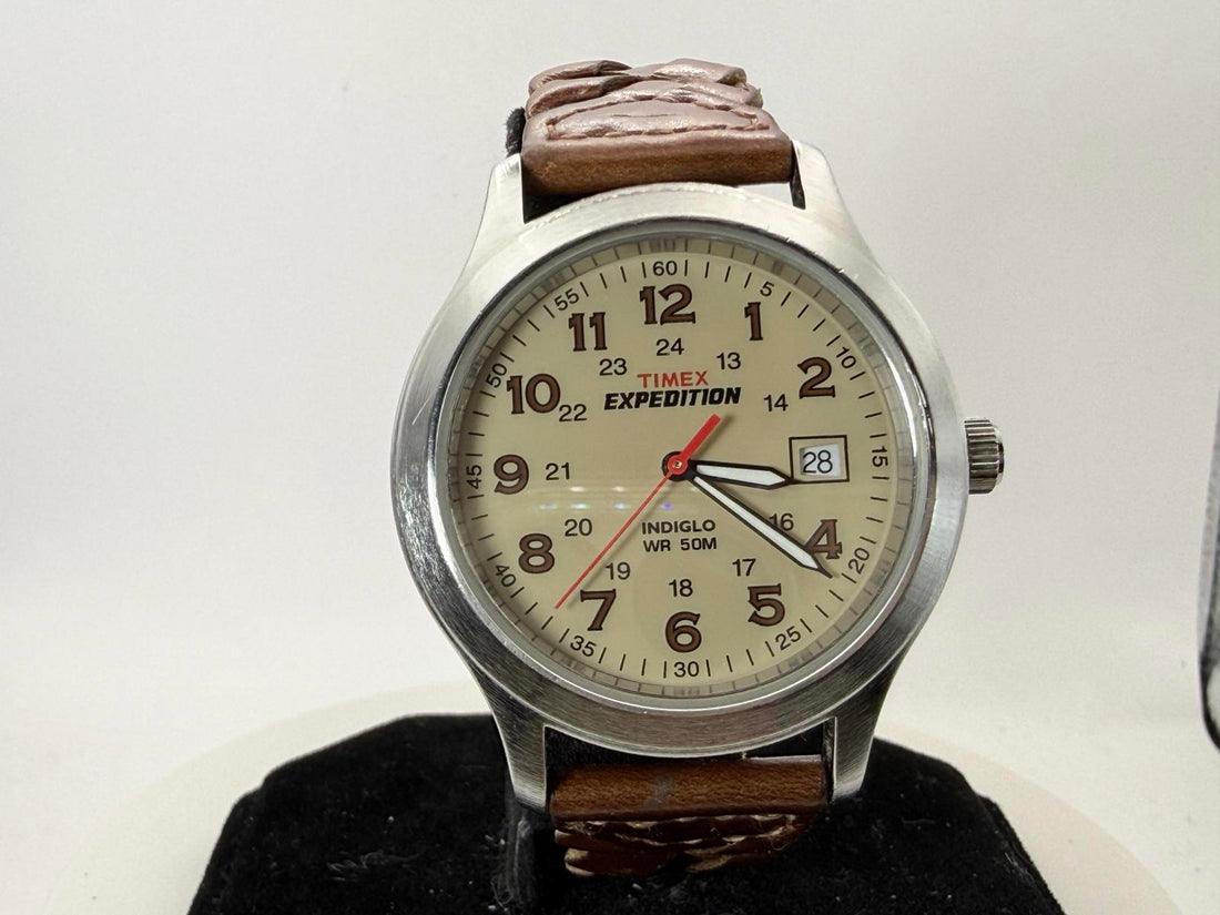 Vintage Timex Expedition Field Watch 37mm Indiglo Quartz New Battery Cream Dial
