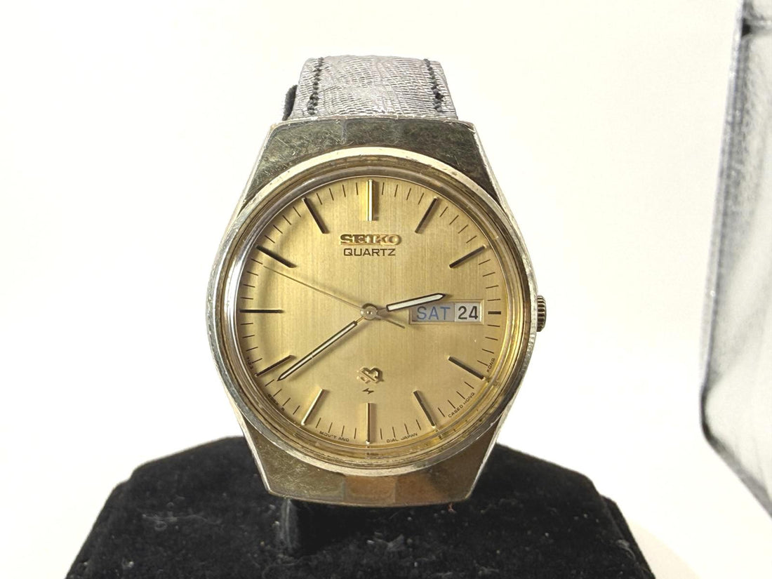 Vintage Seiko Quartz Day Date Gold Dial Mens Watch 7123-8579 35mm