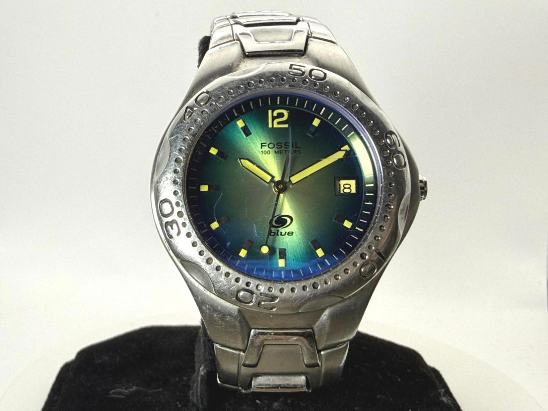 Fossil Blue AM-3520 Quartz Watch 36mm Green Dial Date 100M Runs