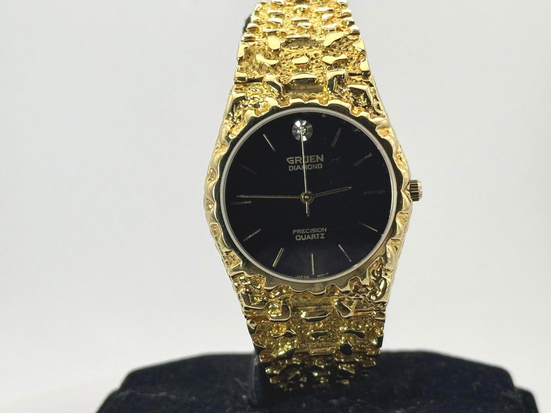 Gruen Diamond Quartz Gold Tone Watch 32mm Black Dial New Battery