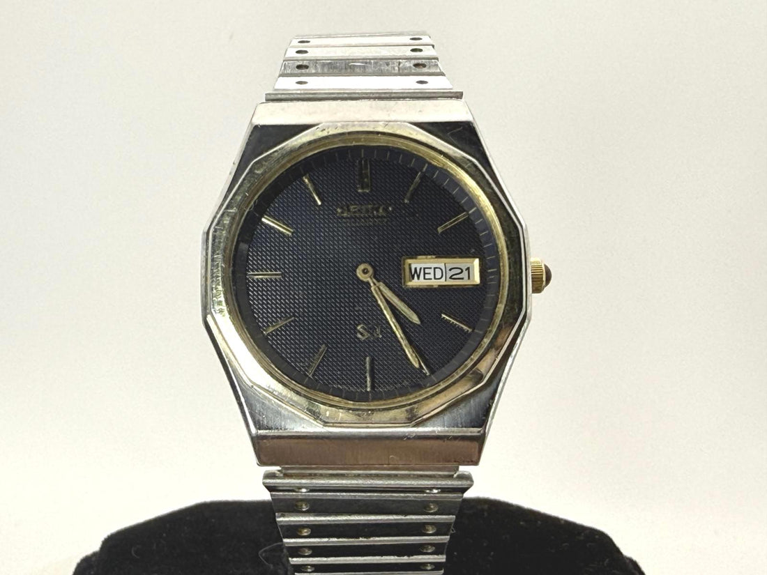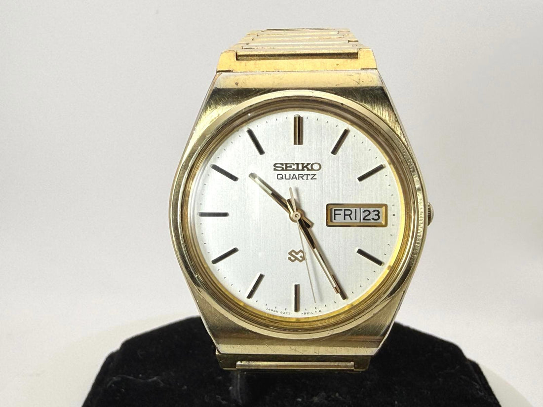 Vintage Seiko SQ Quartz 8223-8029 Gold Day Date 35mm Watch Japan Clean