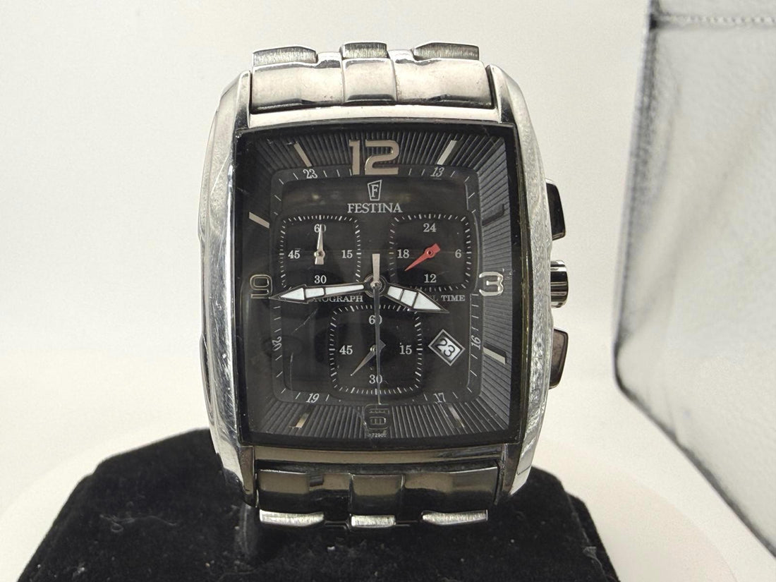 Festina 6729 Chronograph Travel Time Square Watch 34mm Steel Black Dial Date