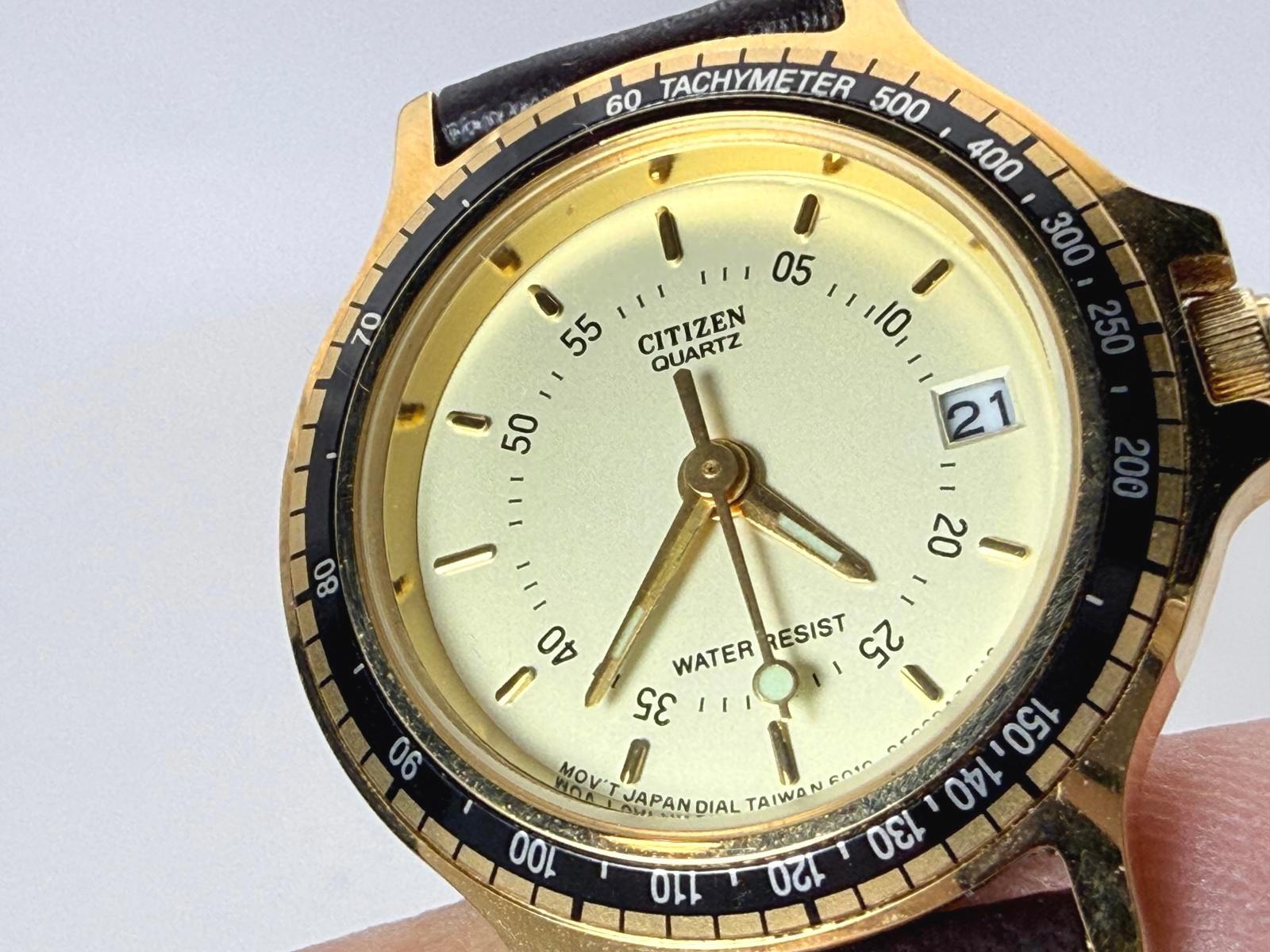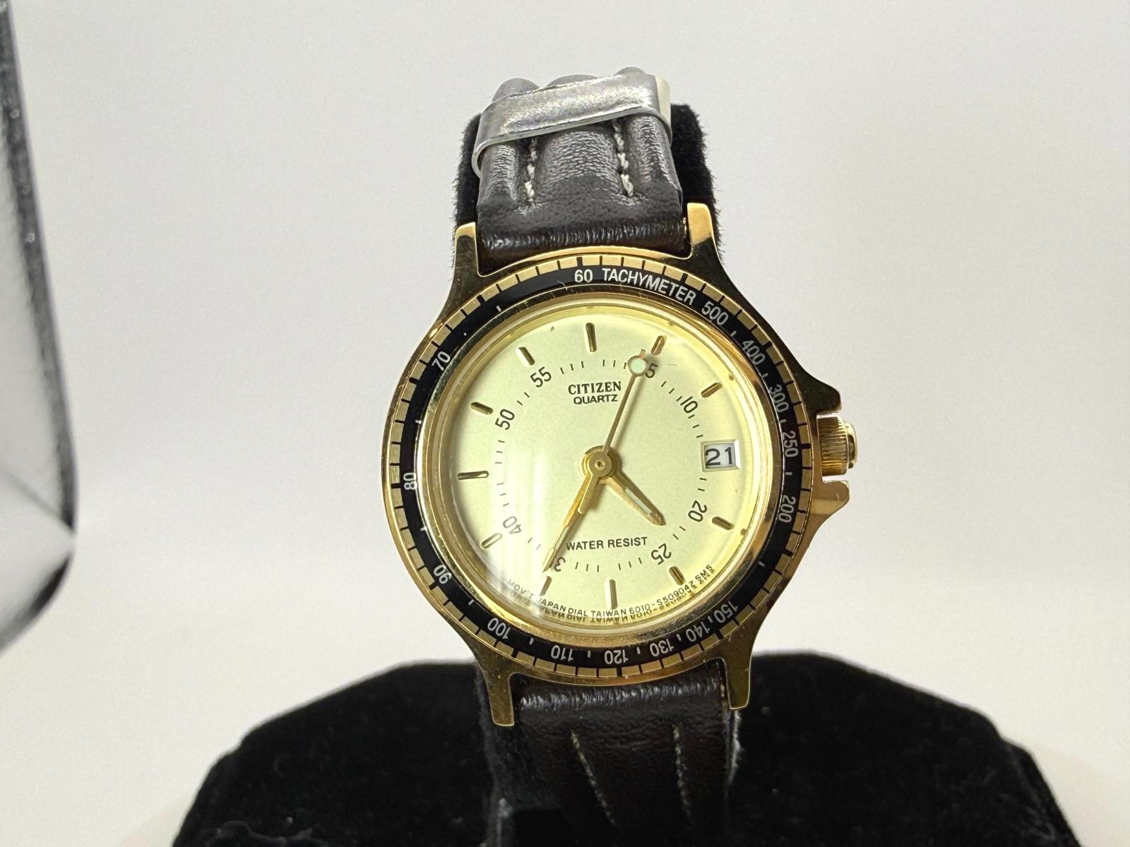 Citizen 6010-S15616 Ladies Quartz Gold Tachymeter 25mm Date Watch Japan