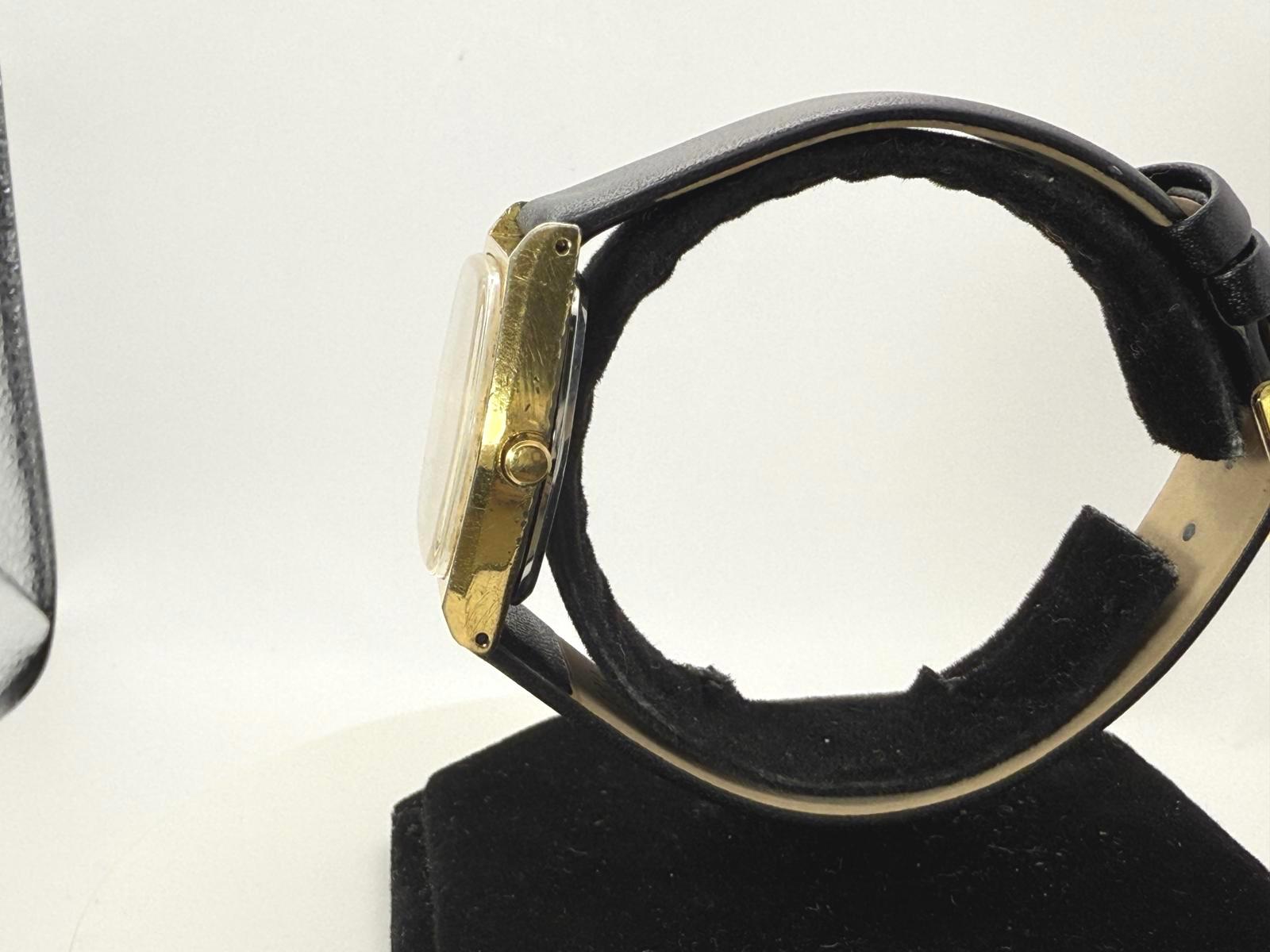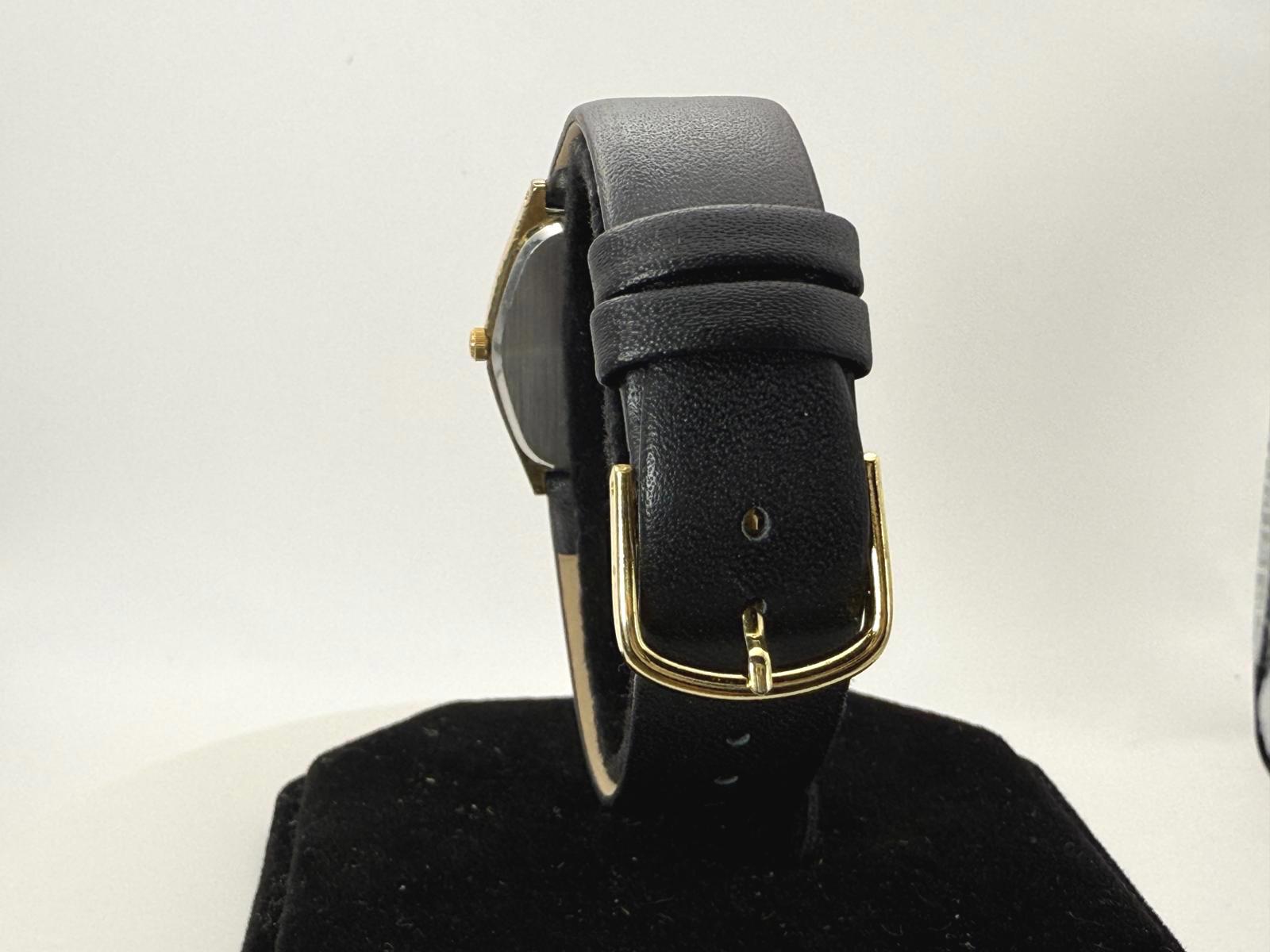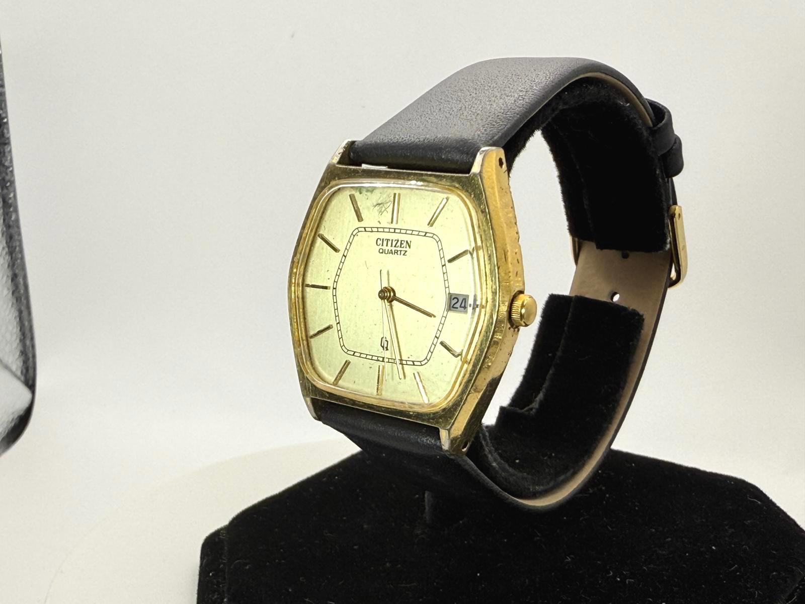 Watch is in good condition. The crystal does have some scratches on it. Dial has some damage in between the 11 and 12 indice. Case shows wear consistent to age. Battery and strap just installed, watch keeping good time as of 9/17/25. I do not have the box or paperwork.