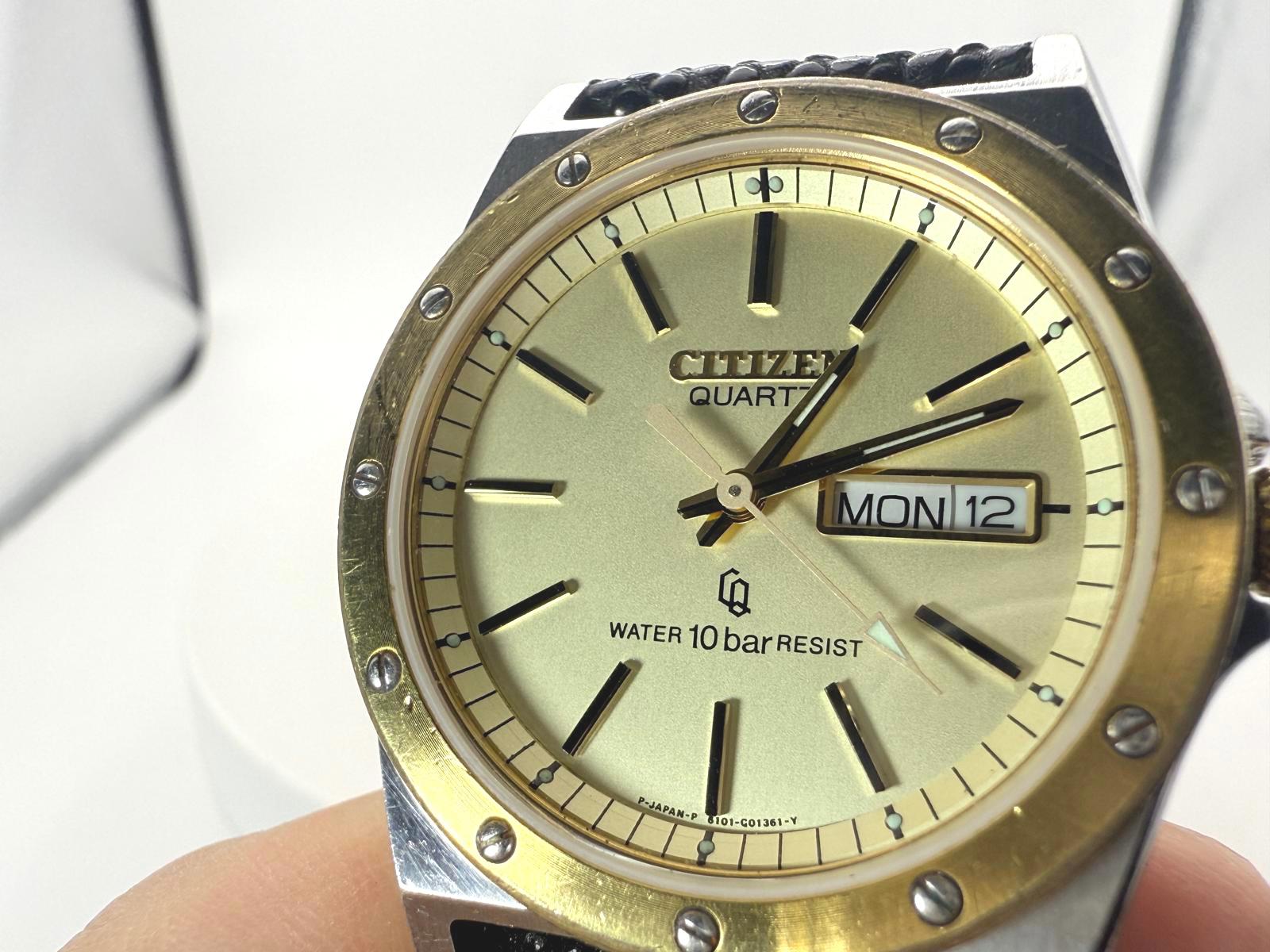 Citizen Quartz Two Tone Watch Champagne Dial Day Date 6101-G00287 35mm