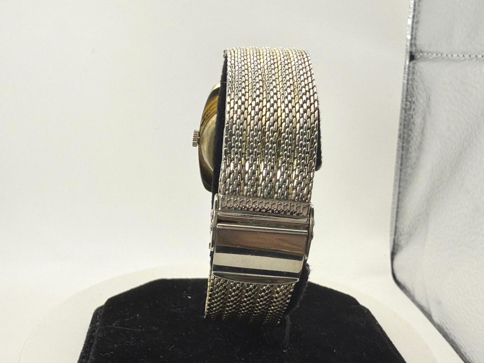 Watch is in good condition. The crystal and case have some light scratches. Gold Plating has worn out in some spots on the case and bracelet. Watch runs as of 11/5/25. I do not have the box or paperwork.