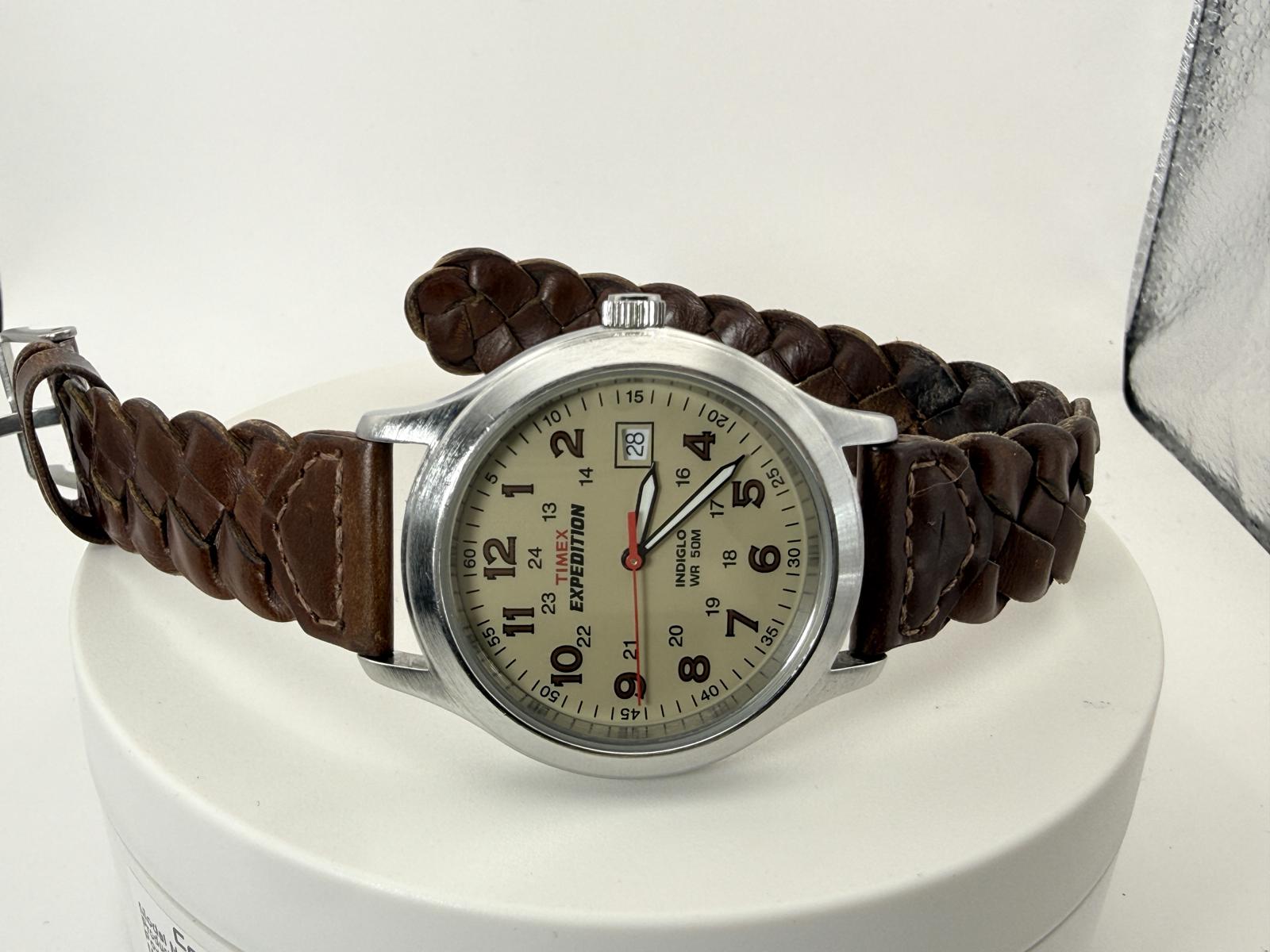 Timex Expedition 36mm Field Watch Cream Dial Date Indiglo New Battery