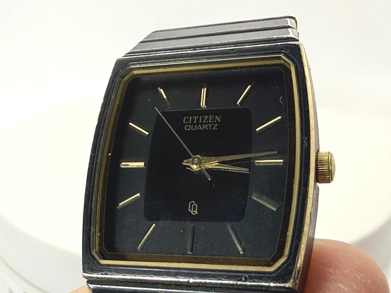 Vintage Citizen Quartz 3630-891309 Black Gold 26mm Tank Watch New Battery